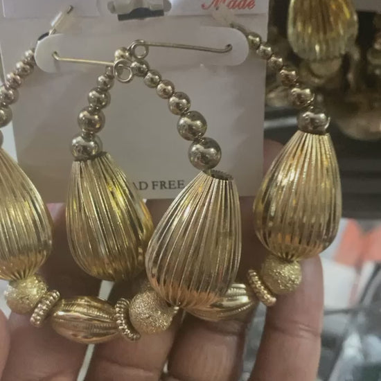 Gold Filled Beaded Hoop Earrings Large Hand Made